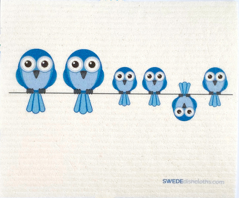 Swedish Dishcloth Bluebirds on Wire Design, Set of 3